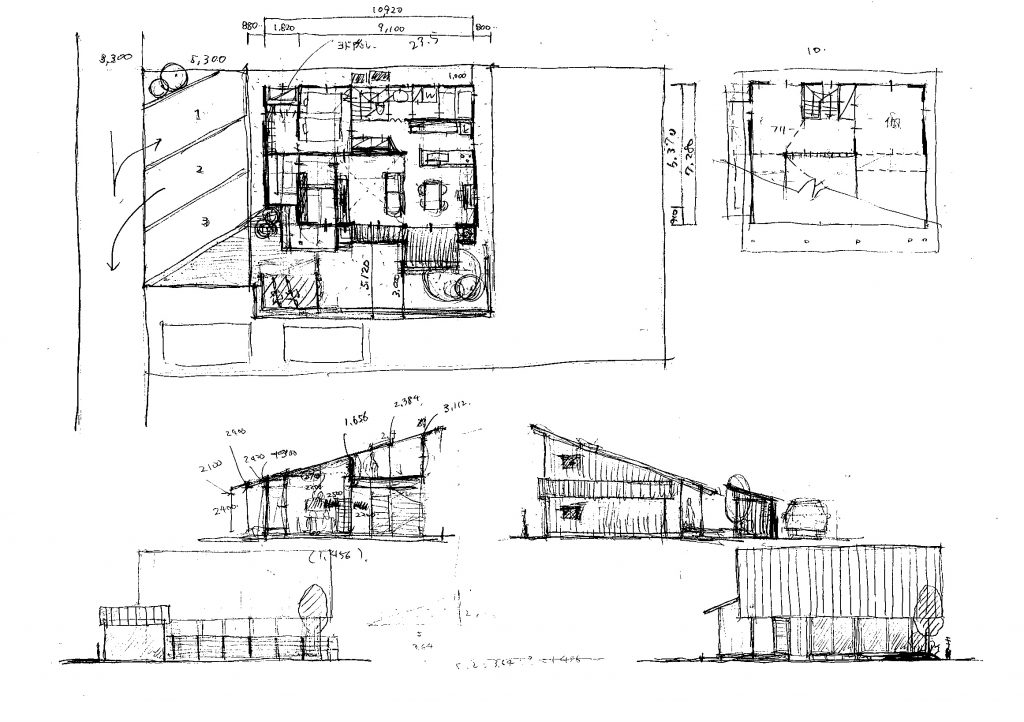土地を決めるためのスケッチなので、この後の設計図はまた違ったものになっていますが、この土地ではこういう計画ができると知ることで「この土地に決めよう」と家づくりのスタートを切ることができました。